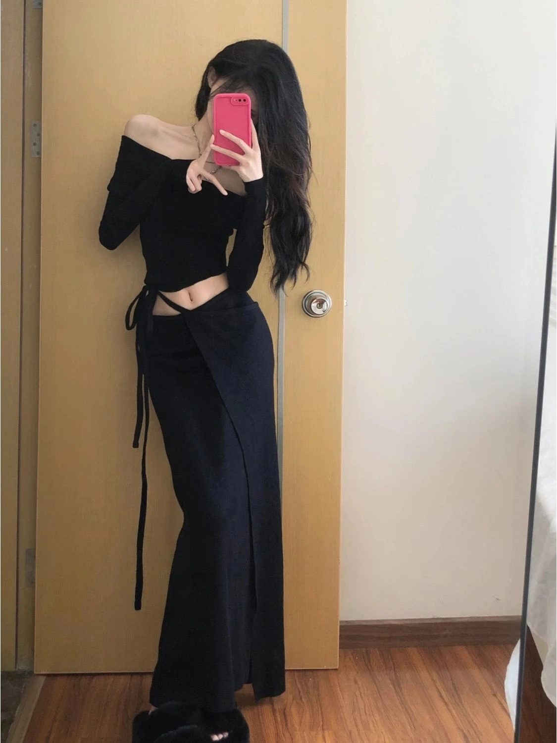 Vintage Two Piece Set 2025 Women's Clothing Slash Neck Tunic Tshirts High Waist Bodycon Bandage Long Skirt Suit Korean Outfits